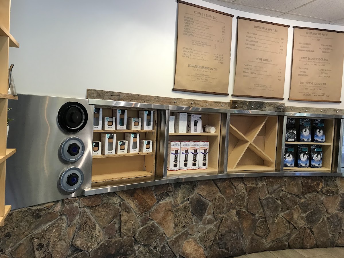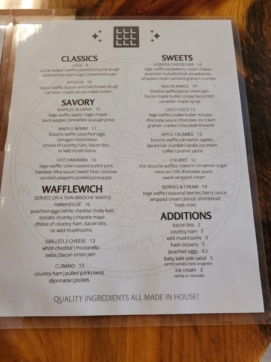 Welcome to Waffleton, the charming cafe nestled in Waterton Park, where waffles reign supreme! This delightful spot is known for its freshly made, soft and fluffy waffles that feature a perfectly crisp caramelized crust. The menu ranges from the indulgent maple bacon waffle and banana liege waffle with Nutella to savory options like the West Coast turkey, ensuring there's something for every palate.